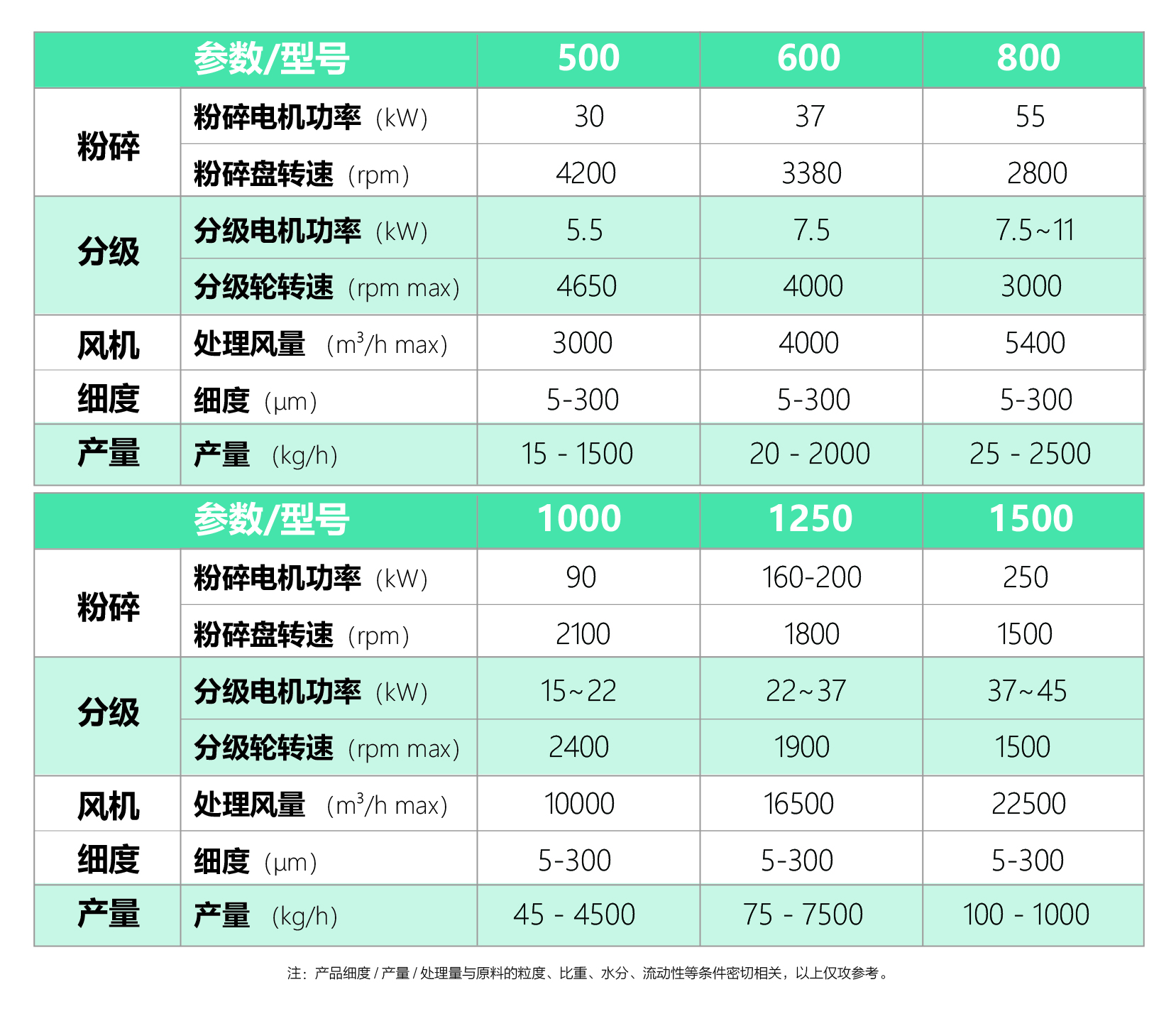 結構緊湊,易拆裝清洗,低成本設計,粉碎分級一體化,通過調整分級輪獲得理想的產品顆粒,適用于D50:3~45μm之間的產品粉碎。